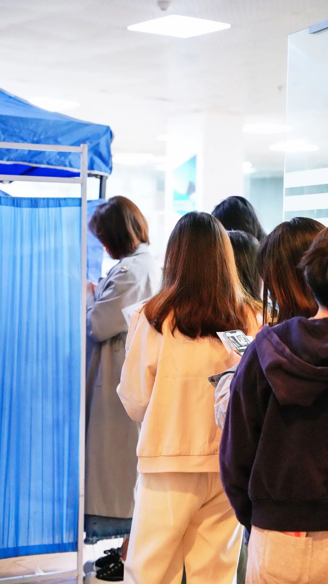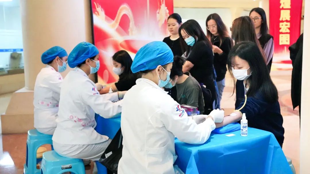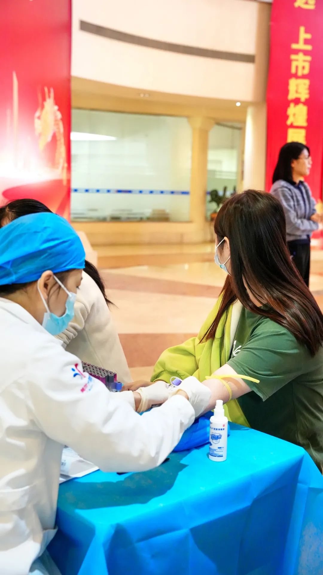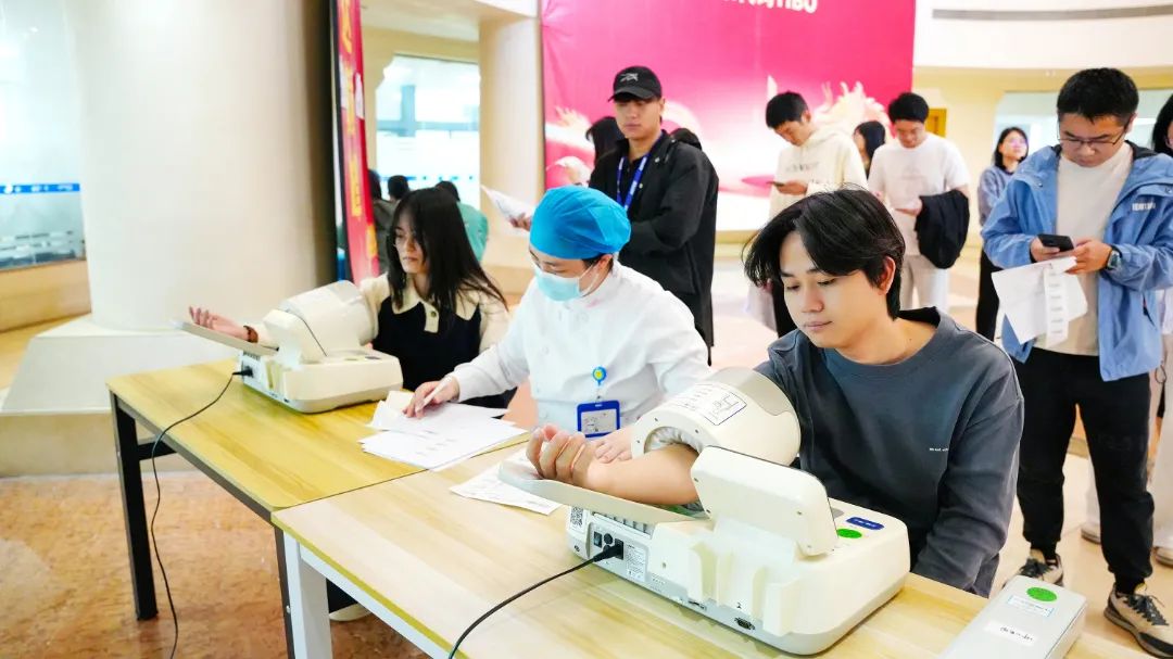 由于血压、血液检验的人数较多、等待时间较长,该区域安排了较多医护人员协助完成。