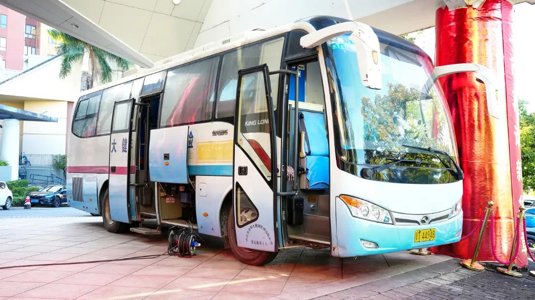 清晨七点半,负责胸部正位DR检查的项目大巴外,已井然有序地排起了体检的长队伍。