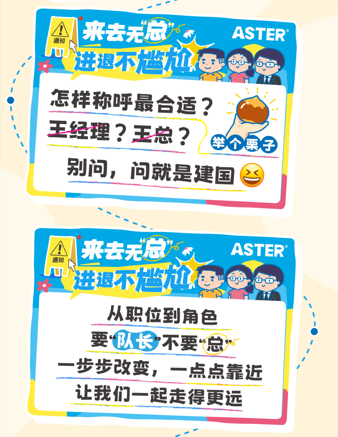 来去无“总”,进退不尴尬!Aster称呼“去总化”行动倡议